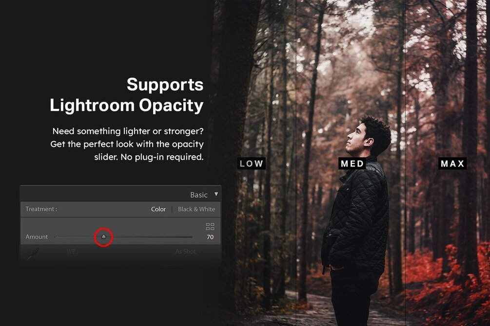 Finally, every preset comes with a skin-protected version. This algorithm by VOXCOLOR restores 25-50% of the original skin tones letting you get a consistent look whether you're shooting landscapes or portraits.