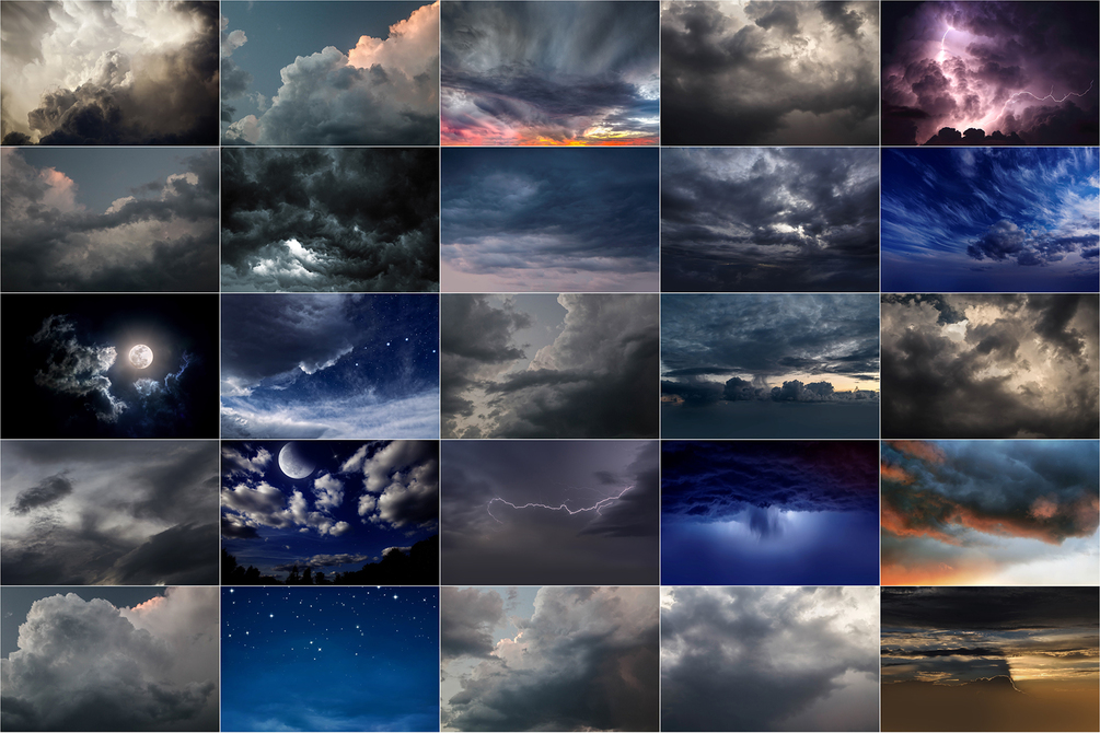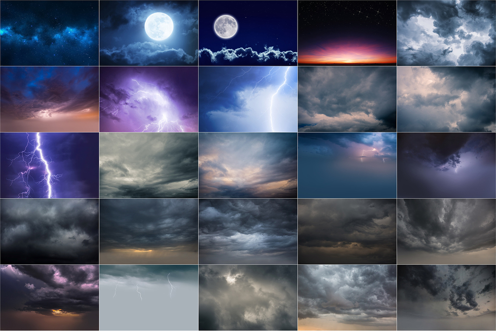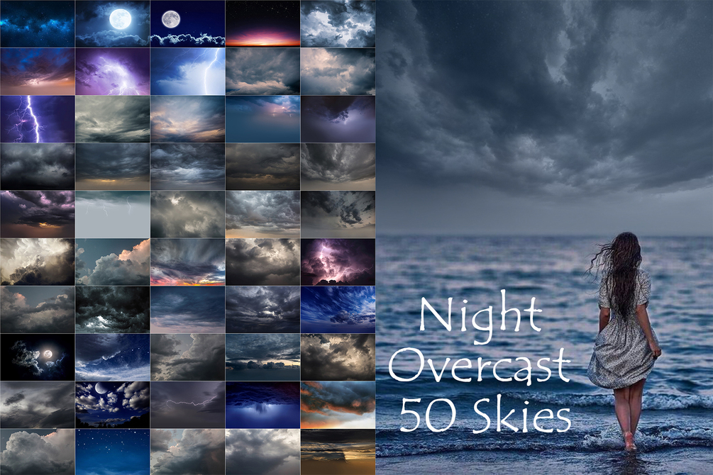 50 Overcast, Storm, Rainy Sky Overlays, Cloud Effect
